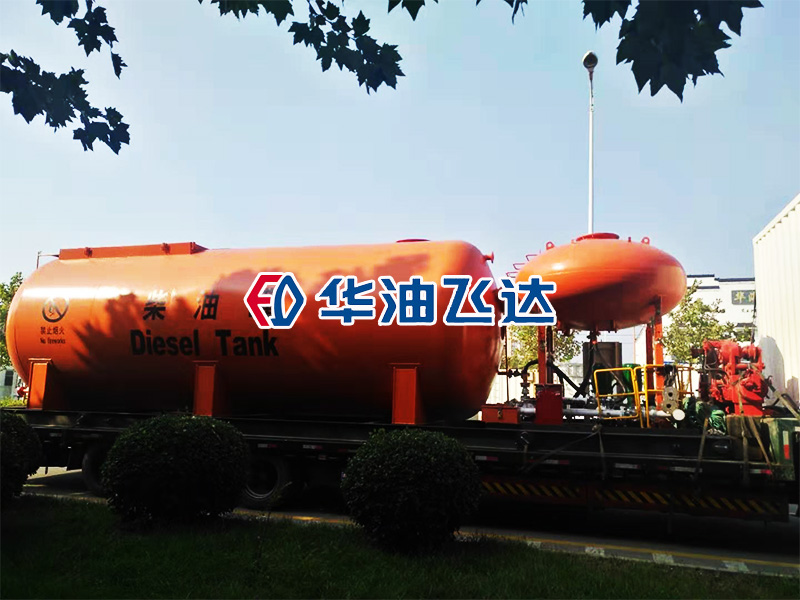 高架柴油罐和小型集裝箱房裝車準備發(fā)貨
