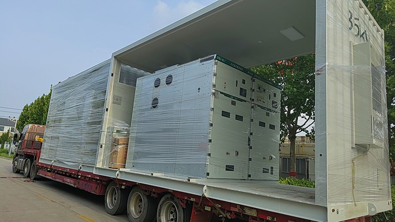 2023年8月7日099預(yù)制項目發(fā)貨,光伏預(yù)制艙是現(xiàn)階段光伏發(fā)電廠所配備光伏發(fā)電項目中的輸配電專項設(shè)備,其自身內(nèi)部包含智能化輸配電相關(guān)管理電器元件,可實現(xiàn)遠(yuǎn)程傳輸、數(shù)據(jù)自動化分析處理、緊急響動應(yīng)急處理等無人化管理的需求,較大程度的降低了光伏發(fā)電廠自身人力、物力資源的使用。
