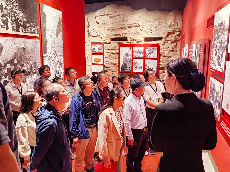 紅旗渠精神的內(nèi)涵是“自力更生、艱苦創(chuàng)業(yè)、團(tuán)結(jié)協(xié)作、無(wú)私奉獻(xiàn)”,是在修建紅旗渠的過(guò)程中形成的。紅旗渠動(dòng)工于1960年,勤勞勇敢的30萬(wàn)林州人民苦戰(zhàn)10個(gè)春秋,僅僅靠著一錘、一鏟、兩只手,在太行山懸崖峭壁上修成了這全長(zhǎng)1500公里的紅旗渠。大家聽(tīng)著講解員講述紅旗渠修建過(guò)程中的感人故事,通過(guò)實(shí)景、實(shí)物、實(shí)例、實(shí)事近距離觸摸歷史,體驗(yàn)修建紅旗渠的艱難險(xiǎn)阻,全過(guò)程多維度學(xué)習(xí)林縣人民戰(zhàn)天斗地、艱苦奮斗的光輝歷程,深入感受他們憑著一條肩膀一雙手、一錘一釬一繩索,逢山鑿洞、遇溝架橋,歷經(jīng)10年風(fēng)霜雨雪,建成長(zhǎng)達(dá)1500公里的“人工天河”紅旗渠的雄偉壯觀。
