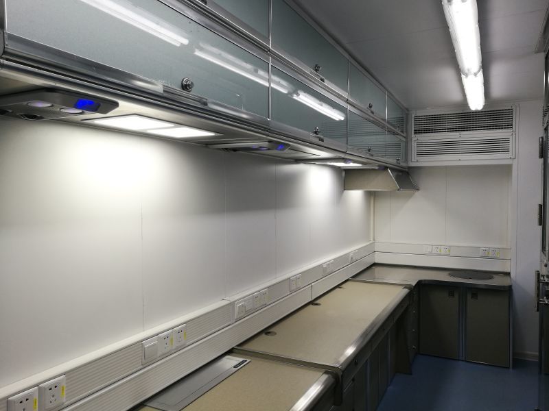 :鋼結構焊制的集裝箱式營房,房體承重能力強,吊裝運輸不變形。與普通野營房相比,該營房防火級別要求高,室內(nèi)裝修選用檔次