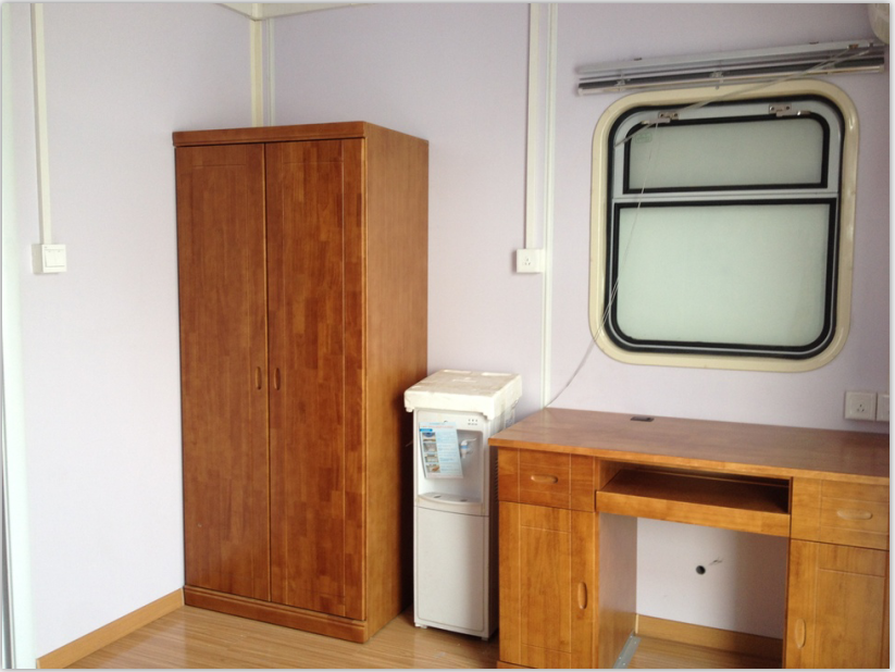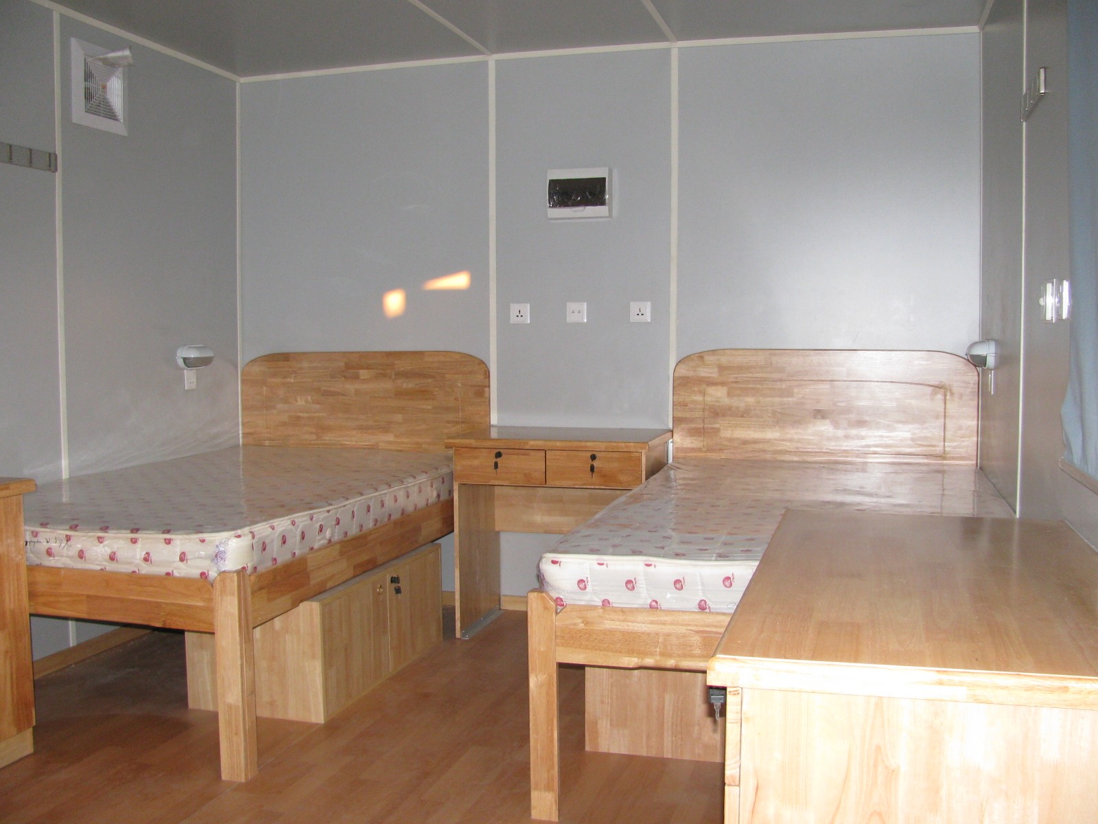 四人間基本配置:空調(diào),床,床墊,衣柜,衣掛,床燈,書架,桌子,椅子,熒光燈,列車窗,百葉窗簾,獨立衛(wèi)浴,淋浴隔斷,熱水器,洗手盆,面鏡,毛巾桿,肥皂盒,衛(wèi)生紙盒等設(shè)施。